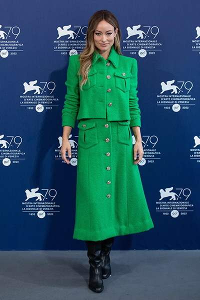 第79回ヴェネツィア国際映画祭でシャネルを着たオリビア・ワイルド。(2022年9月5日)