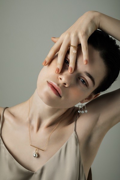 アデュニオンは1958年、伊勢志摩で創業したユニオン真珠の新ブランド。使用するパールは、色とテリの美しさで知られるアコヤ真珠だ。真珠は海水の温度差によって艶やかな天然の色が生まれるが、アデュニオンではあえて染めていない無調色のものを採用している。天然の色や形を身につけることで、自然の神秘を感じてほしいという思いが込められているのだ。