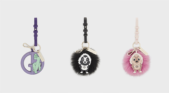 ハリネズミと、アルマーニと自然環境の結びつきの象徴であるウリがキーホルダーに。(ウリ)¥67,100、(ハリネズミ)各¥77,000(以上、日本限定)/以上、ジョルジオ アルマーニ(ジョルジオ アルマーニ ジャパン)
