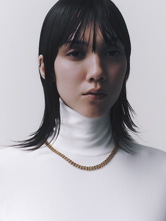 ひとつひとつのチェーンに施されているのは細やかなクロスモチーフ。ブランドを象徴するモチーフが溶け合い、クラシカルなネックレスに繊細な表情を添える。