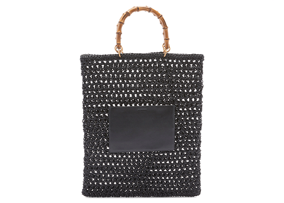 「カゴバッグは一年中使っている私の定番バッグ。ジル サンダーのこのサイズは、A4資料も入り仕事にも相性がよく、重宝しそう。黒のボディとバンブーハンドルという組み合わせも素敵なコントラスト」