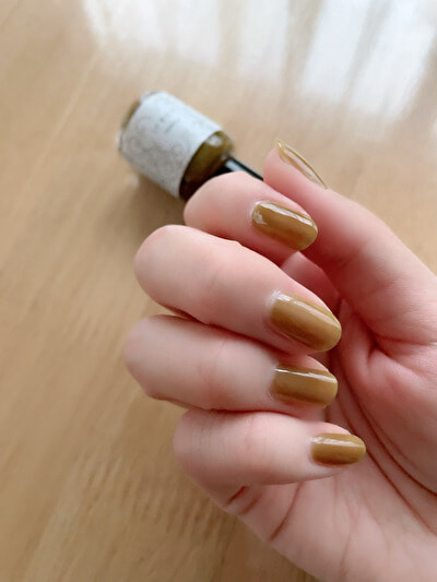 落ち着きがあって淡くまろやかなカラバリが魅力の「オサジ」のマニキュア。ピックアップしたのは、イエローでもグリーンでもブラウンでもない、名前の通りまさに鉱物のような色。人と被らないかつ洒落カラーで、意外とどんな色の服装にもマッチする不思議さです。こちらも1度塗りだと透け感が出るので、冬らしく2度塗りをしてこっくりと深みのある爪に。