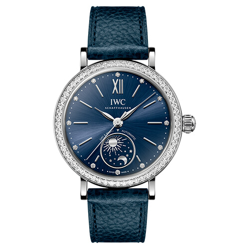 スイスのシャフハウゼンを拠点とするアイ・ダブリュー・シー。1868年の創業以来、クロノグラフやパーペチュアルカレンダー搭載のコンプリケーションを製作してきた。この「ポートフィノ」は1980年代に人気が高まっていた、ラウンド型のクラシカルなゴールドウォッチにインスピレーションを得た時計だ。イタリアのリグーリア海岸に面するリゾート、ポルトフィーノ(Portofino)をその名の由来とするように、ブランドの中でも最もエレガントなコレクションとして受け継がれてきた。84年にムーンフェイズ搭載のモデルが初めて登場したが、その後も星や月が輝くデイ&ナイト表示の時計が登場するなど、女性の心に訴えかけるロマンティックな趣向が凝らされている。