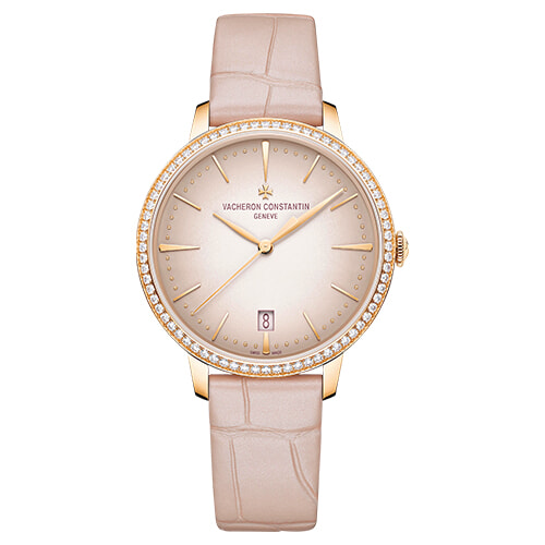 2022年のテーマは美の構造。緩やかなドーム形状にグラデーションを描くブラッシュピンクの文字盤が、実に上品なハーモニーを奏でる。(PG×ダイヤモンド×アリゲーターストラップ、φ36.5mm、自動巻き)¥5,016,000/ヴァシュロン・コンスタンタン