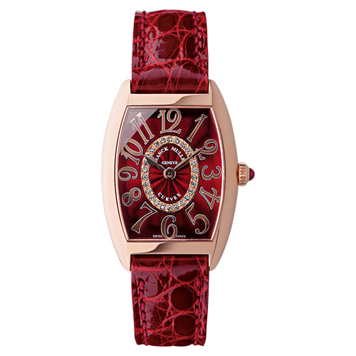 裏から型押しする立体的なレリーフインデックスが特徴的。何層も塗り重ねることで深い艶めきを見せるエナメル使いに、卓越した職人技が宿る。(PG×クロコダイルストラップ、35×25mm、クオーツ)¥1,650,000/フランク ミュラー ウォッチランド東京