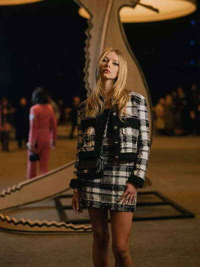 ファッションショーのフロントローは、またとないお披露目の場? 今回、公の場に現れたアップル・マーティンにとって成功に間違いない。グウィネス・パルトロウと歌手クリス・マーティンの娘は、長い間メディアからスポットライトを浴びることはなかったが、1月25日(火)にパリで行われたシャネルのオートクチュールショーのフロントローにセレブリティのひとりとして登場した。前日のスキャパレリのショーでインフルエンサーのカイリー・ジェンナーが着用していた、本物より本物らしい(多くの人を混乱させるほど)ライオンの頭付きドレスのような華やかなルックではない。18歳の女子学生にとって、初のシャネルのショー、そして初のファッションショーに参加するための服装は、とてもコンサバなものだった。黒と白のツイードのミニドレスに、ストレートカットのスモールサイズのジャケットを羽織り、キルティングのバッグとシャネルのブレスレットを身に着けていた。