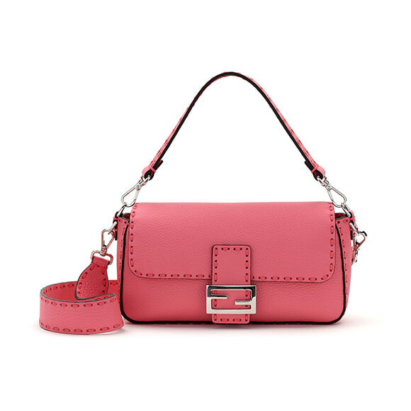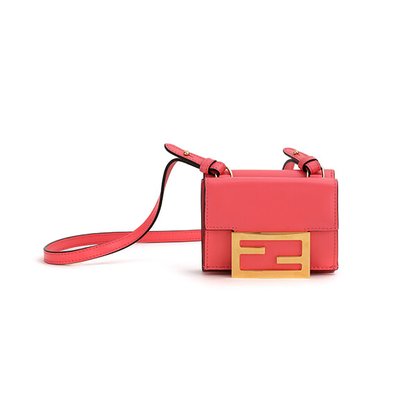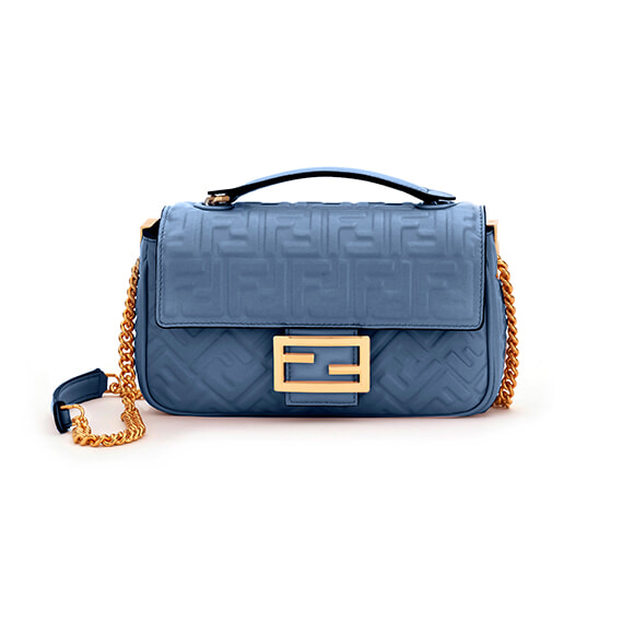 鮮やかなピンクとグリーンに加えて、深みのあるコーンフラワーブルーも今季のキーカラー。「FF」ロゴを全面に施したナッパレザーはリローンチ当時から展開がある定番的な素材。手持ちと肩掛けにさっとチェンジできる便利なスライド式チェーンストラップを採用。