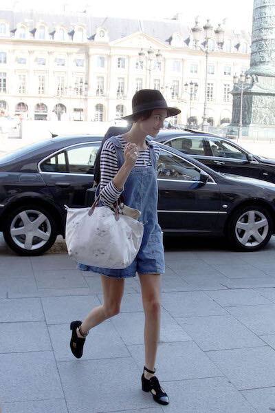 2011年、パリのファッションウィークでキャッチされたアレクサ・チャン。シャルル・アナスタスとコラボしたキュートな猫柄の「ル プリアージュ®」がアレクサの肩肘張らないフレンチカジュアルにマッチ!