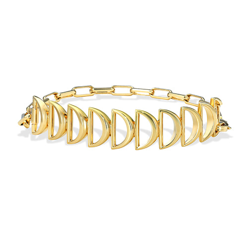 ハーフムーンを繋いだブレスレットは、ボリュームもありながら、モチーフから透ける肌が軽やか。