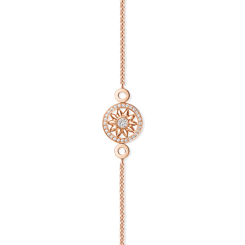 可憐な花びらは、愛らしさたっぷり。肌なじみのよいローズゴールドとちりばめられたダイヤモンドで繊細な輝きを。