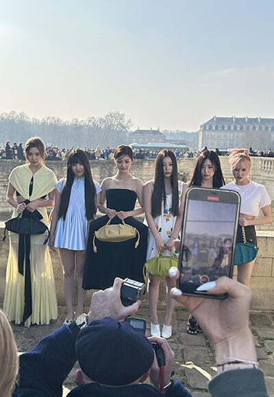 NMIXXの6人はパセオバッグを手に。どんなに手を伸ばしても誰かのカメラが入っちゃいます。