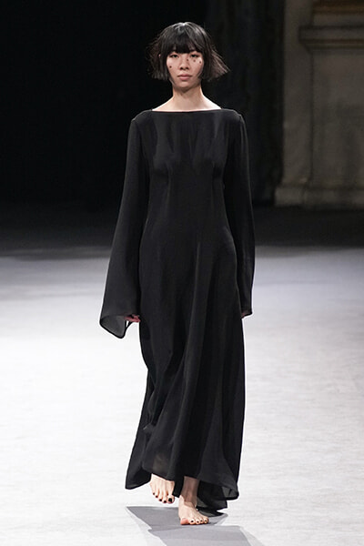 フィナーレを飾ったのはすべてを削ぎ落としたシンプルな黒のドレス。photo:Imaxtree