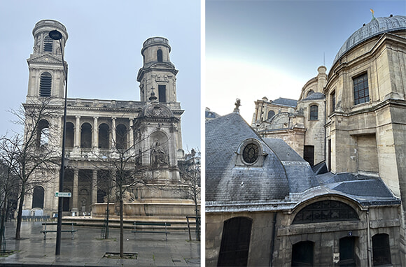 さて、相変わらずの左岸派なので、今回宿泊先に選んだのは6区のサン=シュルピス教会の真裏にあるホテル。部屋の窓を開けると教会の屋根が見えます。サン=シュルピス教会は1646年にルイ13世のお妃であるアンリ・ドートリッシュの命で建造が始まり、でも、完成したのは100年後の1745年とか。その後、火災や戦争の被害を受け、2011年に修復が完了。ダン・ブラウンの小説、そして映画にもなった『ダ・ヴインチ・コード』に登場したことからロケ地巡りのスポットにもなったのでご存知の方も多いですよね。