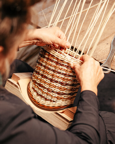 ロワール地方産のヤナギを職人が手で編み込んでつくるリュクスなカゴバッグ「パン ミニ バケット オジエ」。