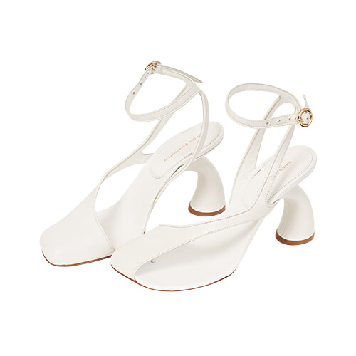 流れるようなシルエットが多く提案されたコレクションに連動して、サンダルのアッパーやヒールもカーヴィーなラインに。