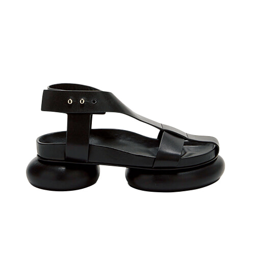 丸みを帯びた彫刻的なソールとヒールがアーティスティック。