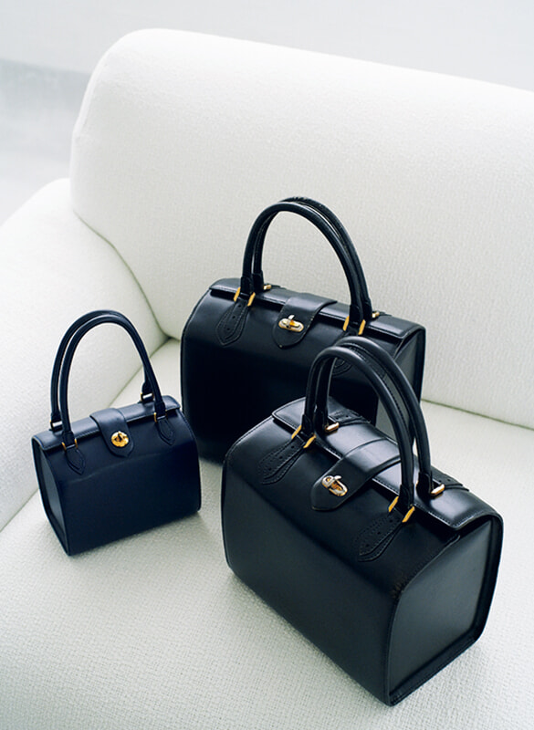 フランスの老舗ブランド、モラビトのバッグ。祖母から譲り受けたのをきっかけに後年異なる革でオーダー。色・サイズ違いも購入。佇まいのよさが気に入っているという。(清水)