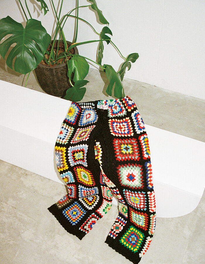 自身が手がけるデプトでは、好きなブランケットを選んでパンツに仕立てるサービスを展開中。次回はフーディをリリース予定。(eri)