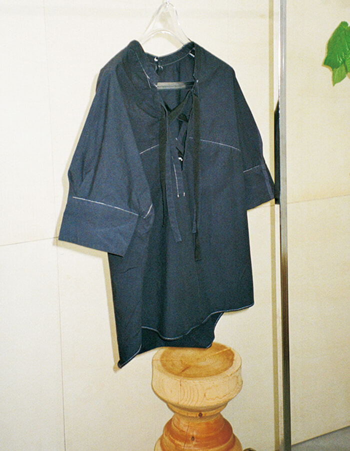 eri ありちゃんは先駆者!! 私は、自分でブランドを始めた当初は古着を使った一点物を作ることをコンセプトにしていたのに、ブランドが成長していくにつれて生地や服をオリジナルで作るようになり、生産上のロット数やシーズンといった商業的なレールに乗って、いつの間にかキャパシティ以上の服を作っている自分がいました。働き方も、誰かが決めたルールに基づいて必要以上にデザインすることもおかしいと感じたのが最初ですね。