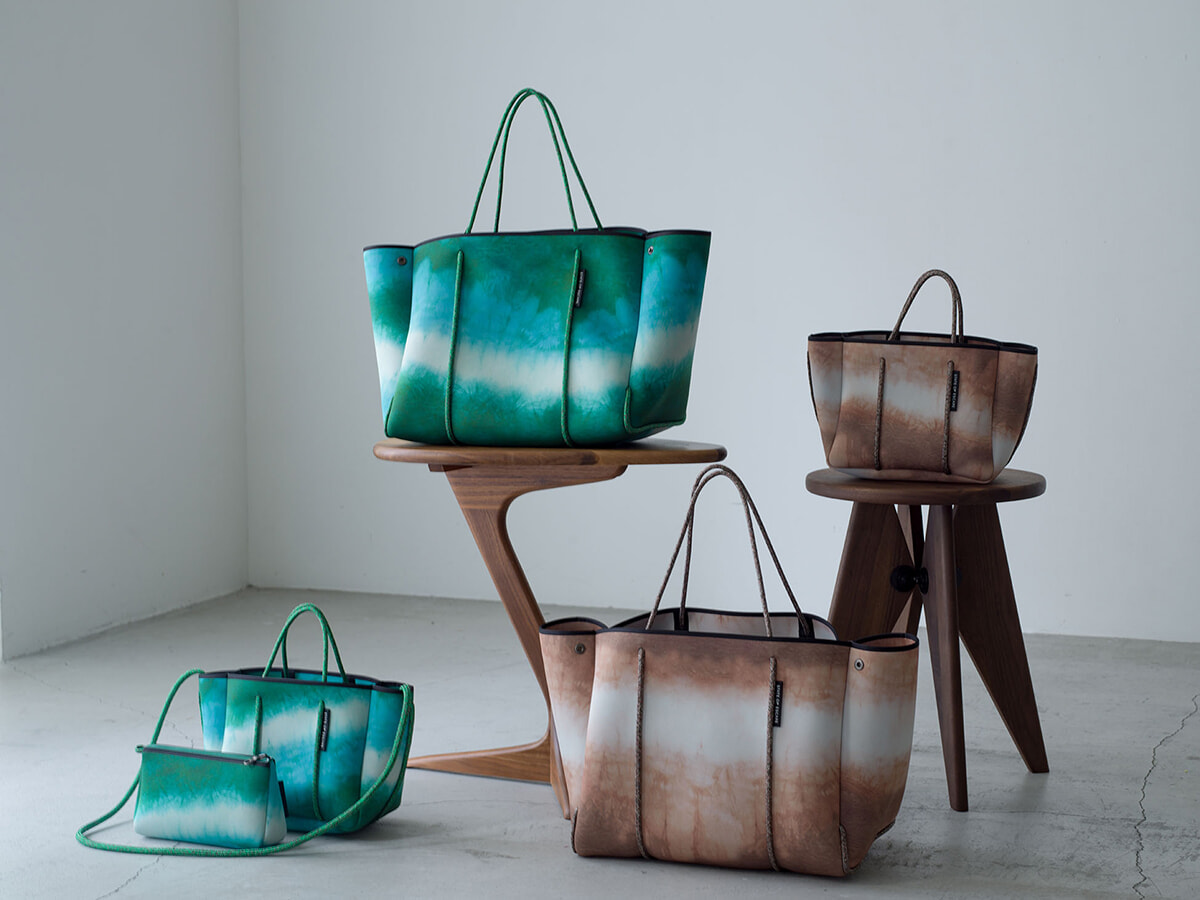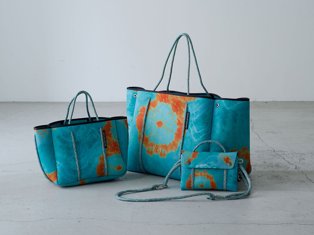 海や大地のエネルギーがみなぎるカラーディップが魅力的なアートワークが目を引くバッグとともに、この夏をアクティブに楽しみたい!