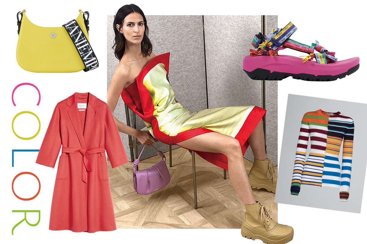 色がもたらす効果のパワフルさは依然として絶大。ネオン旋風は一段落し、今季は原色が増えそうな予感。