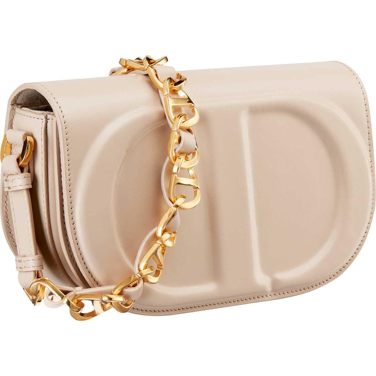 エンボス加工がフラップの全面を覆い、チェーンストラップにも使われるなど、デザインの主役といっても過言ではない‟CD”イニシャル尽くしの新作バッグ。