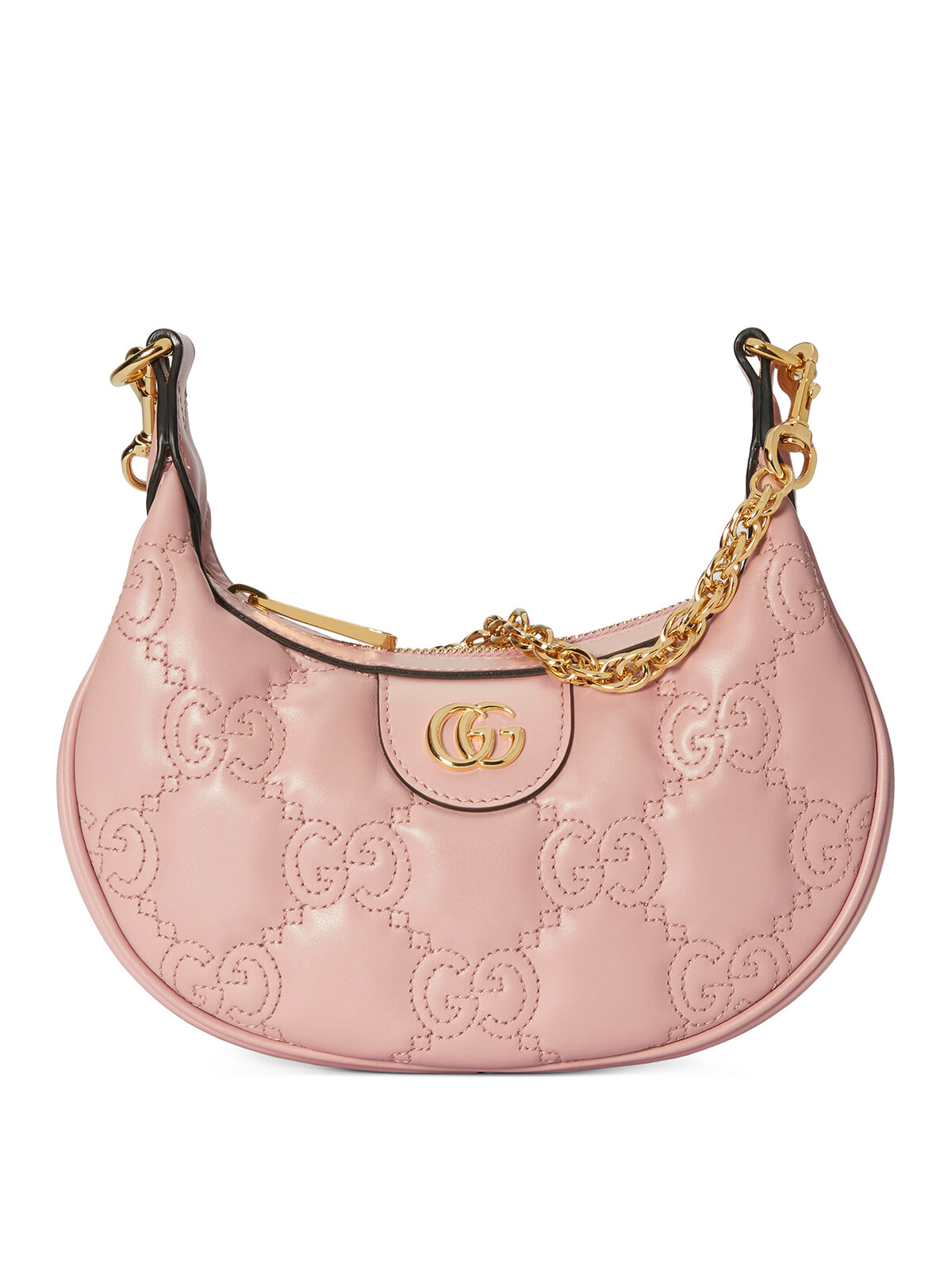 GGパターンを全面にキルティングした人気シリーズの新色は、けむるようなパステルピンク。2タイプのストラップを付け替えて楽しめるのも嬉しい。