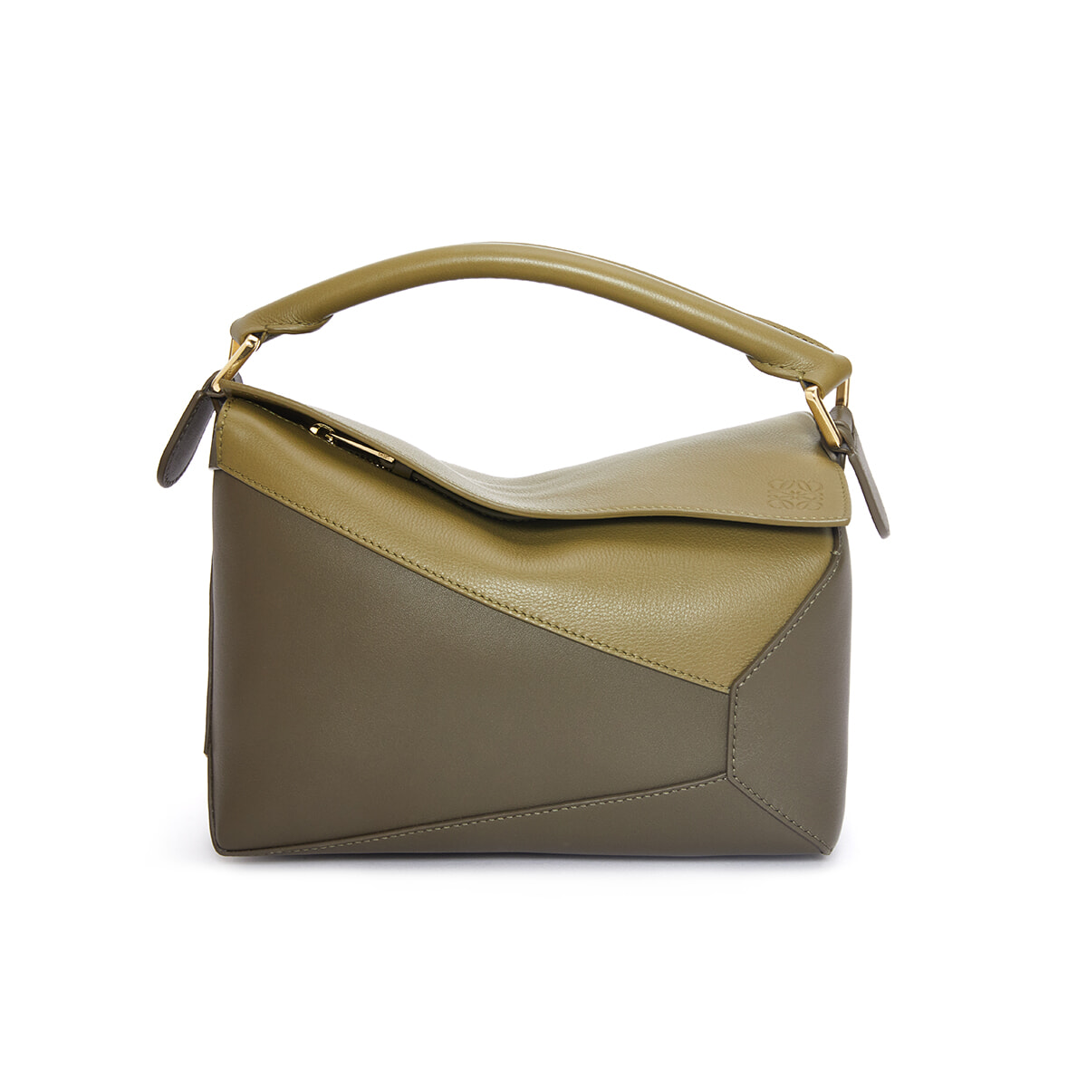 ジョナサン・アンダーソンによってデザインされたロエベの定番バッグ「バイカラー パズルバッグ スモール」の最新カラー。落ち着いたグリーンのバイカラーが小粋。