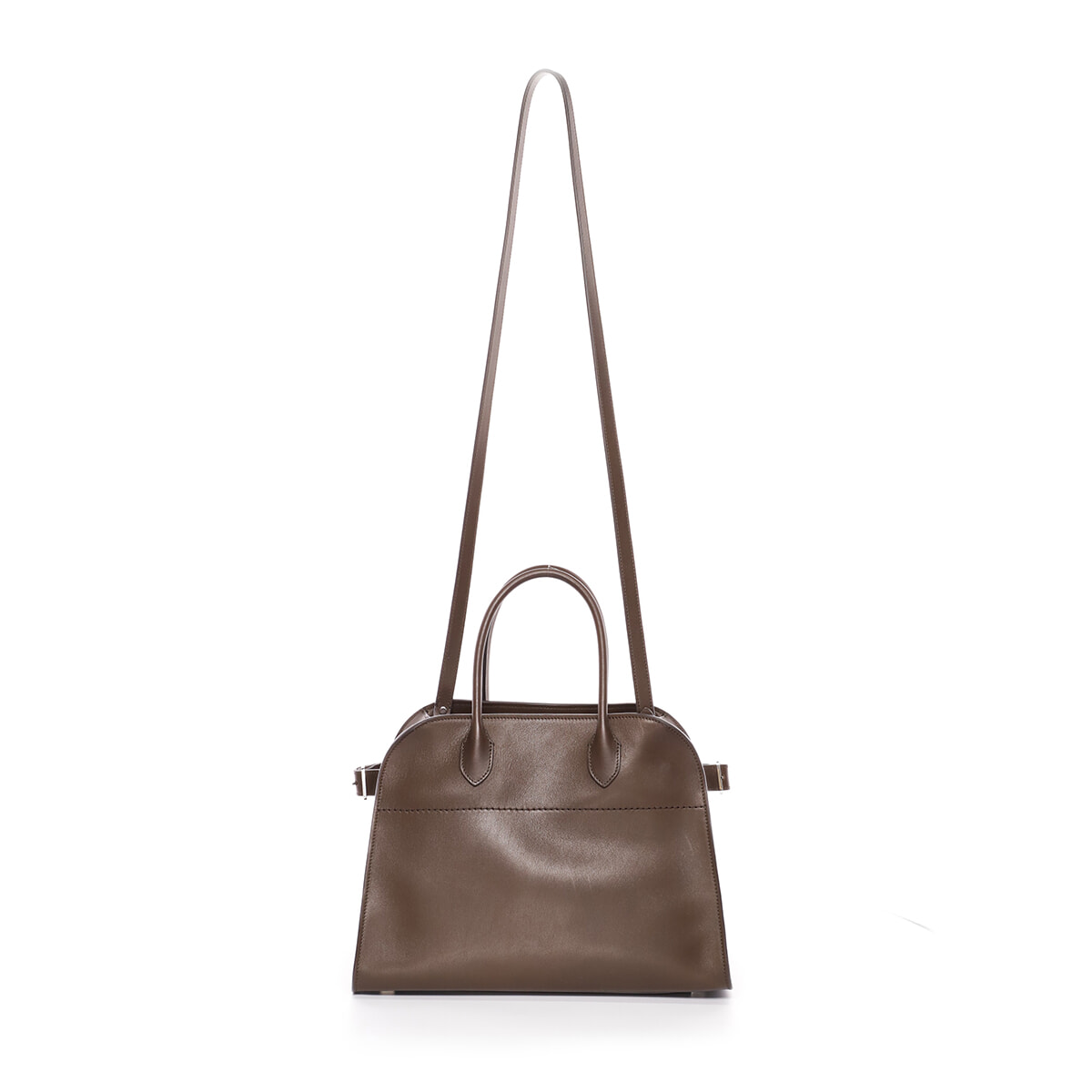ザ・ロウのシグネチャーバッグ「マルゴー」シリーズの新サイズ。ナチュラルな質感が魅力的なサドルレザー製で、深いブラウンが上品でマニッシュな女性像にも似合う逸品。経年変化する表情を楽しめるのも、魅力のひとつ。取り外し可能なレザーストラップ付き。