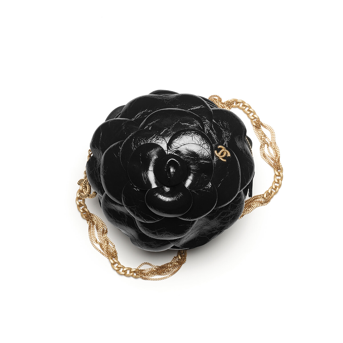 ガブリエル・シャネルが愛したというメゾンにとって特別な花、カメリアを立体的に表現したミニバッグ。艶やかなレザーにより美しく咲いたカメリアに太さの異なるチェーンを配し、リュクスな逸品に。
