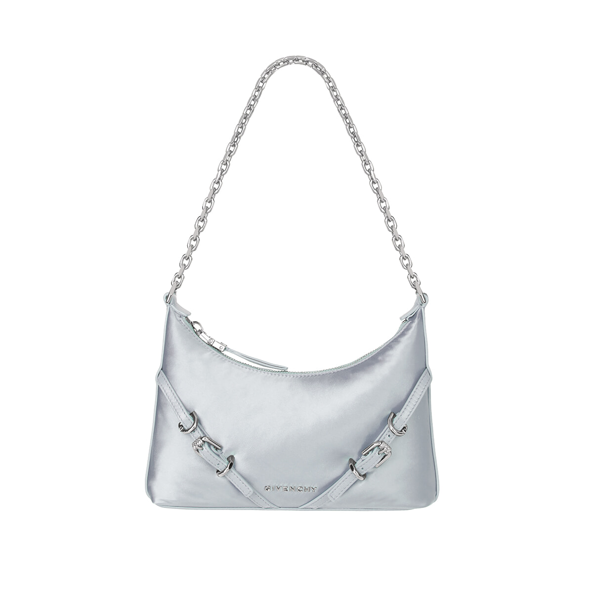 今年登場したメゾンのニューアイコンバッグが、チェーンタイプとして仲間入り。全体がシルバーの輝きで統一され、エレガントな雰囲気を纏う。パーティシーンはもちろん、ダークになりがちな秋冬スタイリングの差し色にもぴったり。