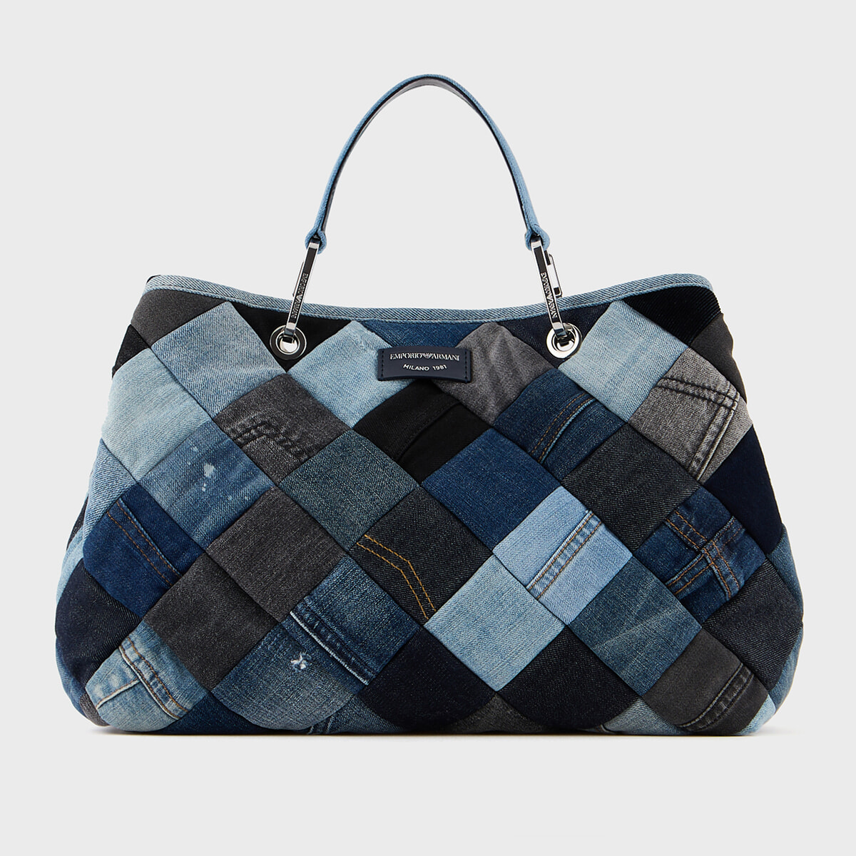 エンポリオ・アルマーニのアイコンバッグ「MyEA」に、リユースデニムをパッチワークしたクラフト感あふれるデザインが登場。「Limited Edition」のナンバリング入りのタグが付く、世界で300点の限定モデル。