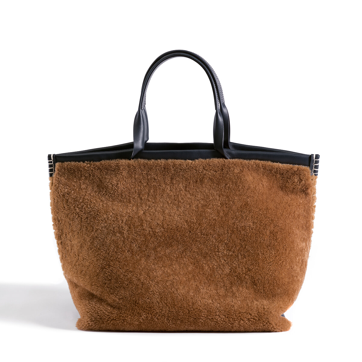 最高品質のスペイン産のメリノ・ウールとカーフレザーを贅沢に使用したリュクスなトートは、柔らかな温もりある手触りが心地いい。
