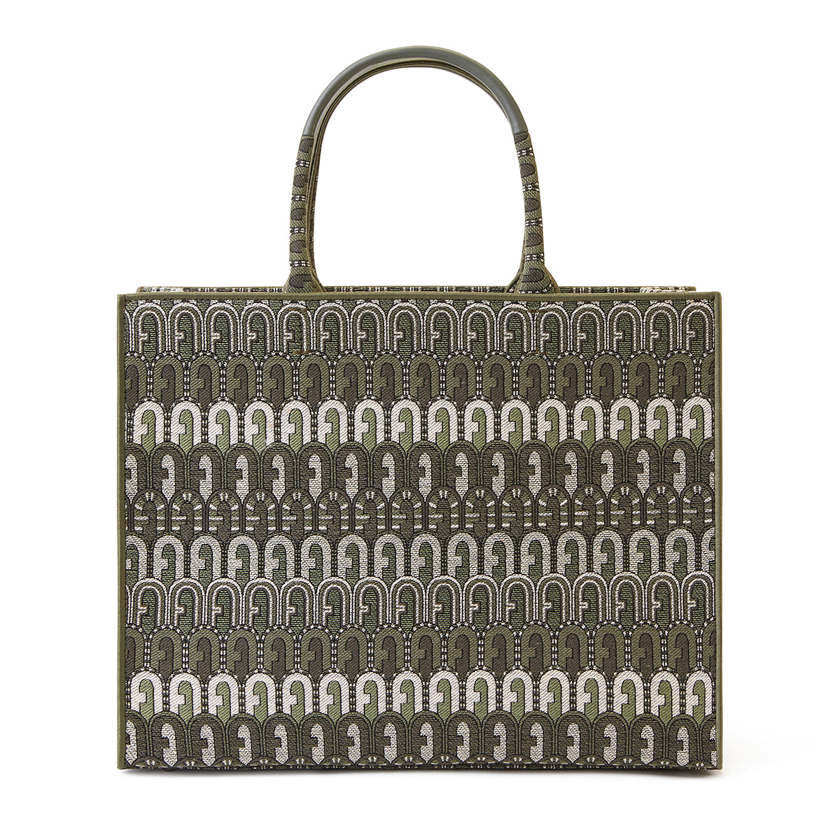 ダブルハンドルで自立型の「フルラ オポチュニティ ラージ」に、秋の新色が仲間入り。アーチロゴをジャカード織りで全面にあしらった小粋なデザイン。
