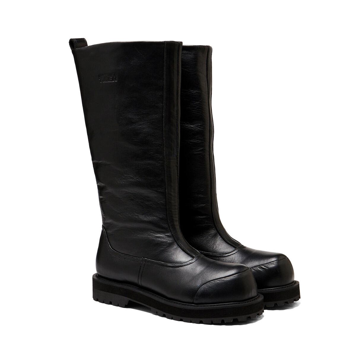 南極観測隊用に開発されたヘビーブーツをモデルベースに、エレガントに仕上げた一足。既存のボリューム感を活かしつつも、上質なレザーとミニマルなディテールで、モード然とした佇まいを纏う。