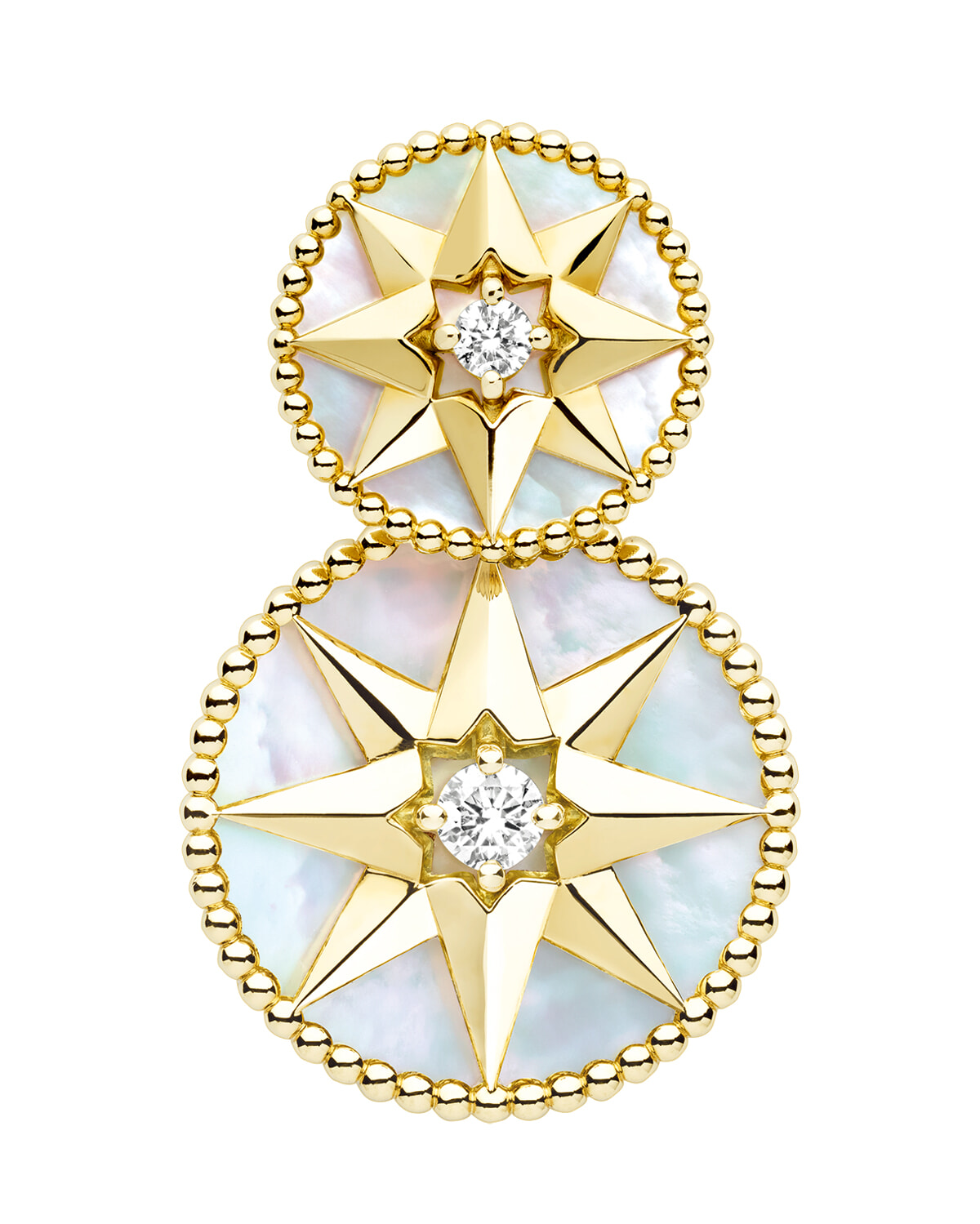 人気のアイコニックなモチーフに、エスニックなエッセンスを加えた新コレクションより、裏表両面楽しめるピアスが登場。「ローズ デ ヴァン トライバル」(YG×MOP×ダイヤモンド)¥532,000(予定価格)/ディオール ファイン ジュエリー(クリスチャン ディオール)