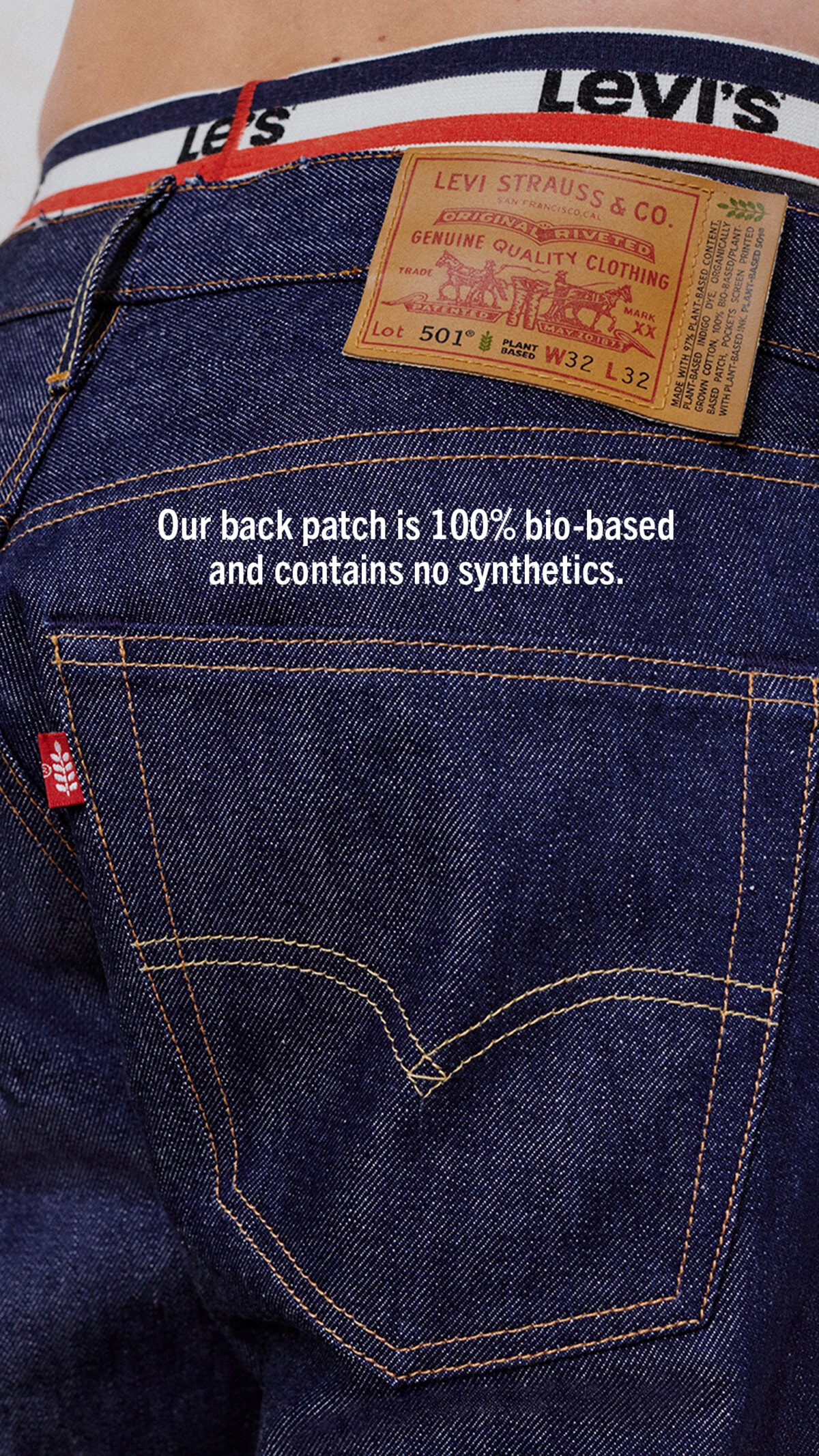 Plant-Based 501®︎ ジーンズは、97%以上が植物由来の素材から成り、すべて認証済みのオーガニックコットンを使用。植物由来の素材でつくられたバックパッチには木くずからつくられたインクが使われている。このジーンズは、化石燃料由来の合成素材を最小限に抑え、再生可能な素材と製造工程による衣料品の必要性が迫られる中で、今後数年間で業界がどのような道をたどるのかを予感させるものとなる。