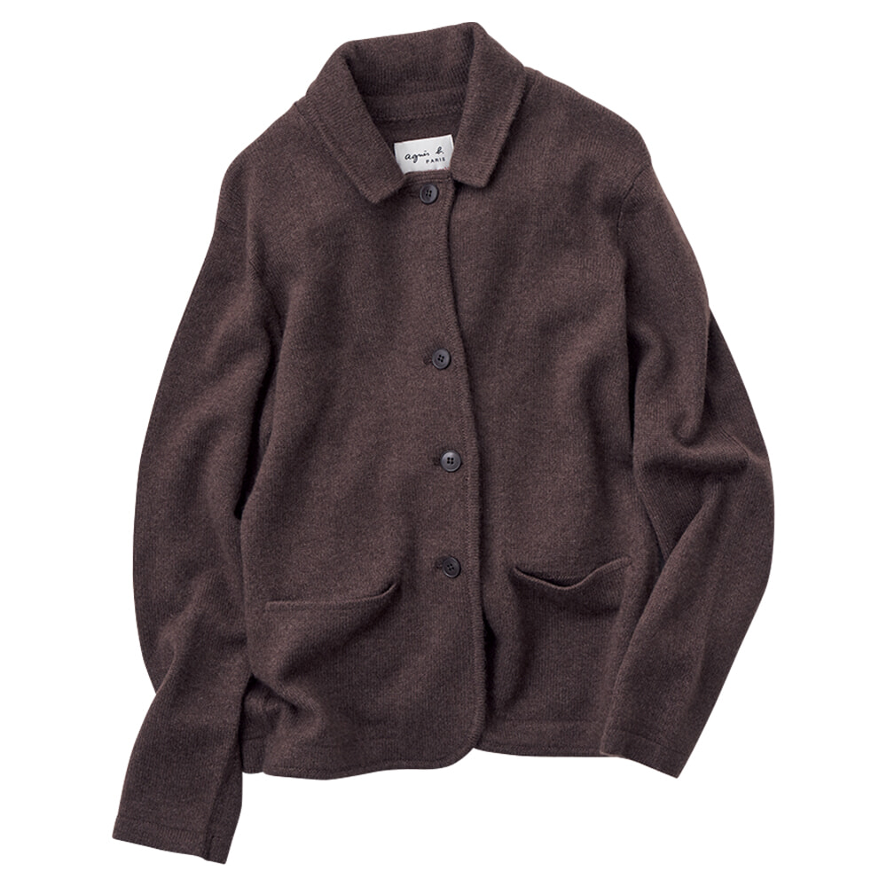 ジャケット感覚で羽織れる襟付きデザイン。カシミア100%で肌触りも抜群。
