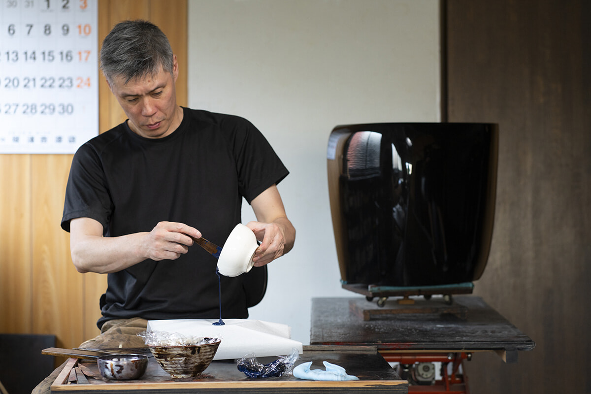 空間に配置された革製のスツールと並ぶ漆喰の台座は、1929年に創業された京都の塗師(ぬし)の職人集団「牧野漆工芸」によって手がけられている。この台座は、パリとニューヨークの店舗にはない、東京店のためだけに作成した、天然漆と伝統的な技術の結晶となる特別な作品だ。