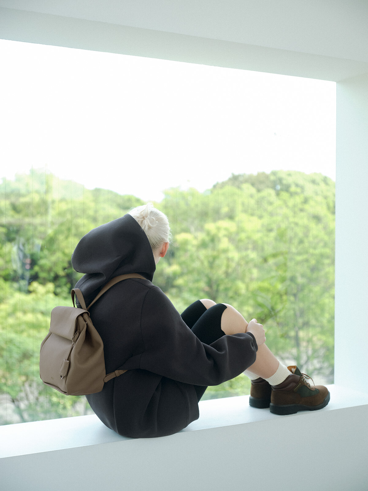 バックパック「フェアリア」(H29×W45.5×D12.75cm)¥121,000/トゥミ(トゥミ・カスタマーセンター) フーディ¥201,300/クレージュ(エドストローム オフィス) ハーフレギンス¥25,300/イロット(ザ・ウォール ショールーム) ソックス¥3,200/パンセレラ(真下商事) シューズ¥19,800/ティンバーランド(VFジャパン)