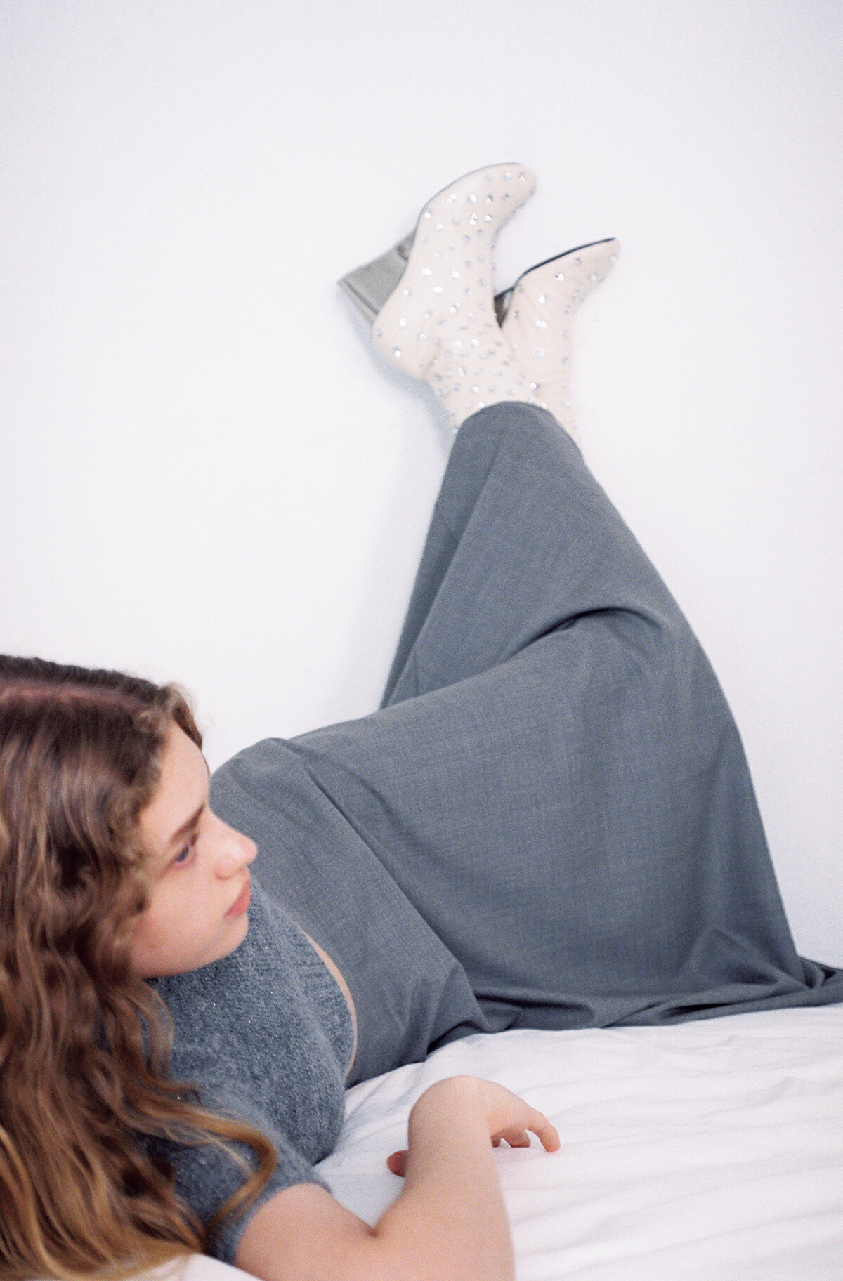 足取りとともに表情が変わるラップスカートの多面性。