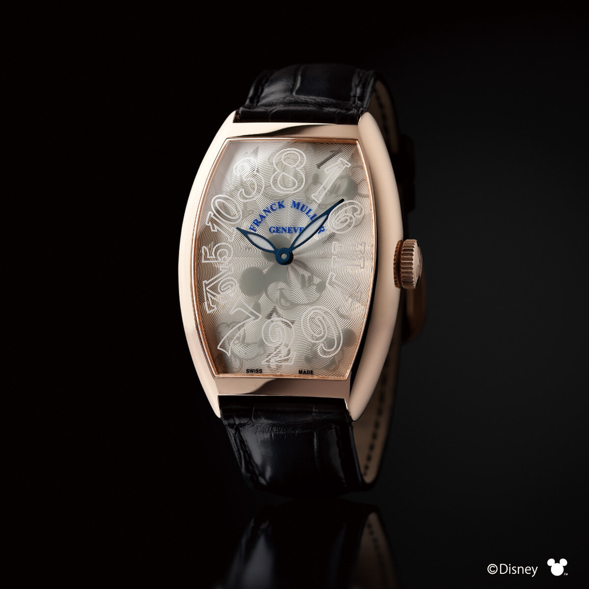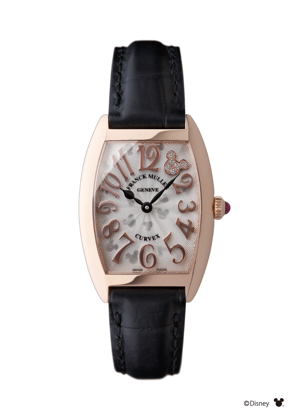 1時位置にダイヤモンドのミッキーを配置。こちらも文字盤全体にミッキーの透かし彫りがあしらわれている。ウォッチ「トノウ カーベックス」(18KPG、35×25mm)¥2,530,000(50本限定、10/20発売)/フランク ミュラー(フランク ミュラー ウォッチランド東京)