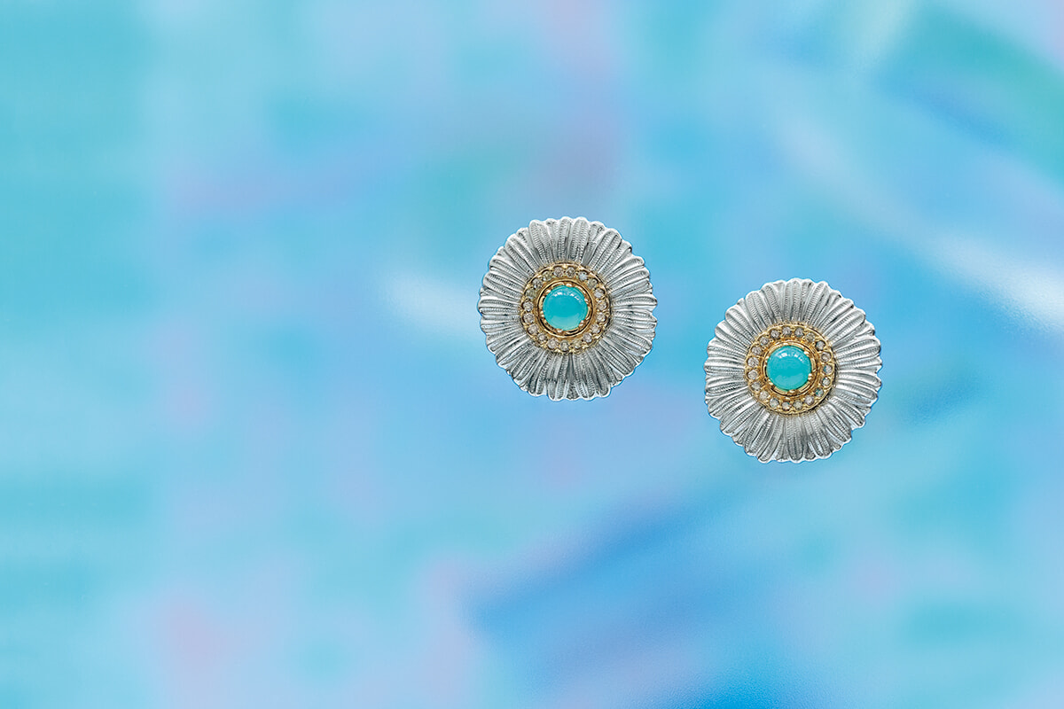 「ブロッサム」カラー イヤリング(ブルーアゲート×ファンシーダイヤモンド×シルバー)¥236,500/ブチェラッティ