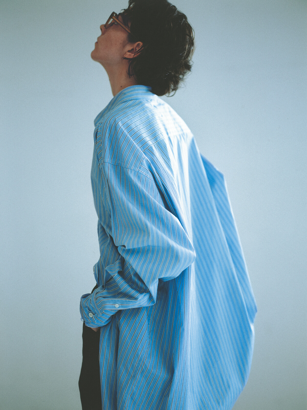 デフォルメされたビッグシルエットのシャツは、グランパシャツのような気分でマニッシュに着こなしたい。かしこまりすぎず、カジュアルすぎない絶妙なバランスの一着はオンでもオフでも。