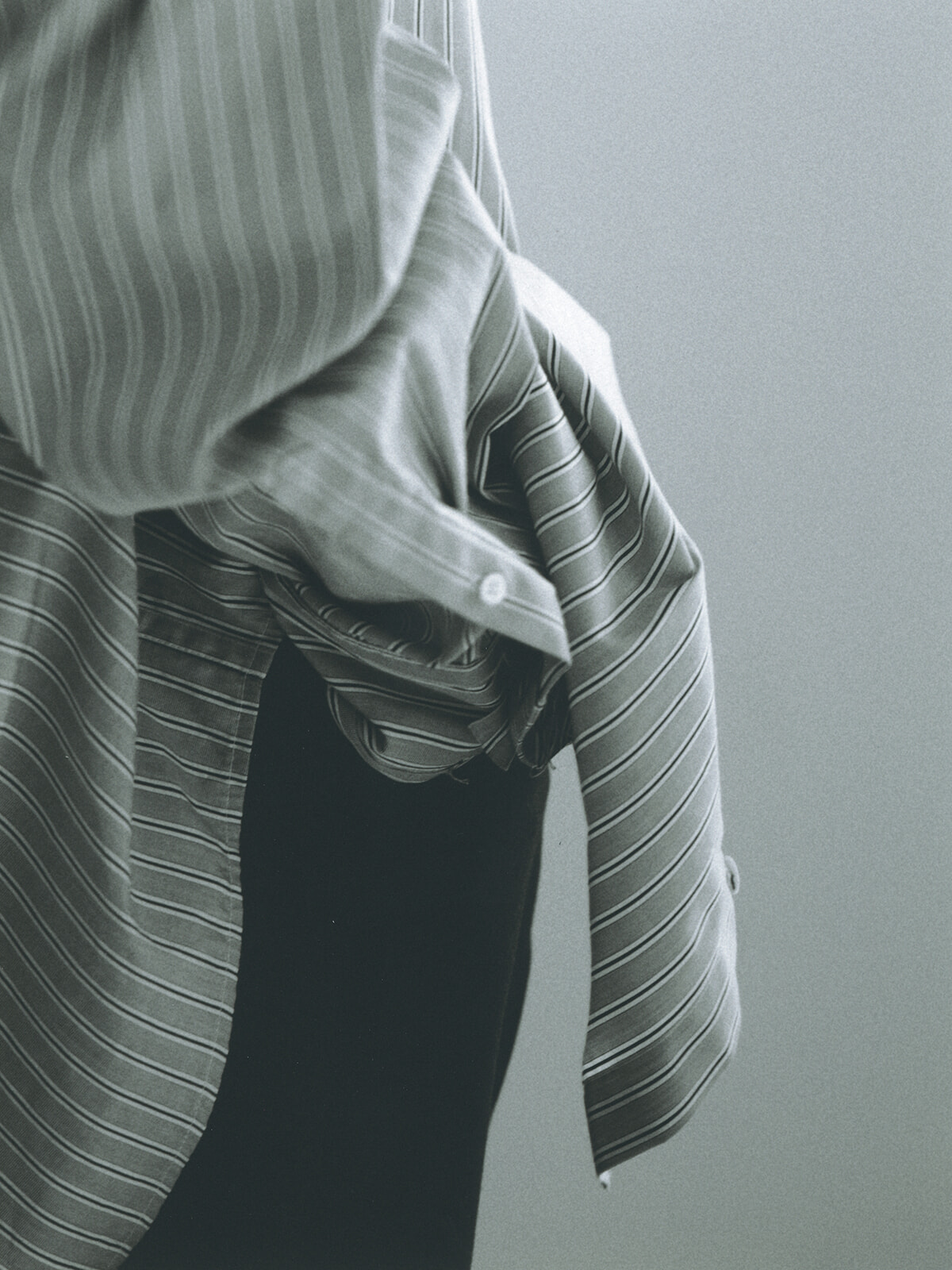 パリッとした滑らかなシャツに袖を通すことで、凛とした空気を纏う。シャツ特有の心地いい緊張感が着る人の個性を際立たせ、所作まで美しく見せてくれる。