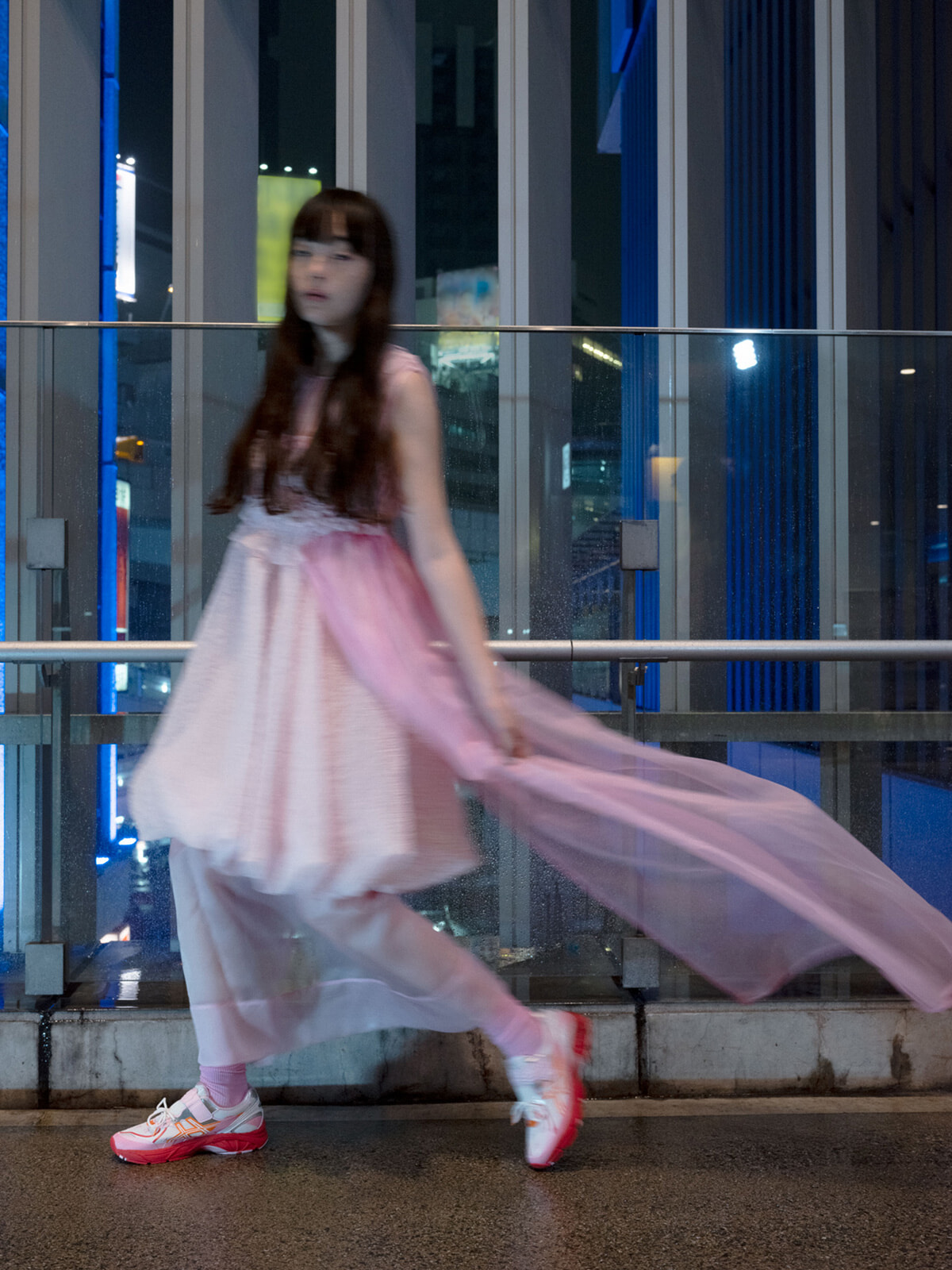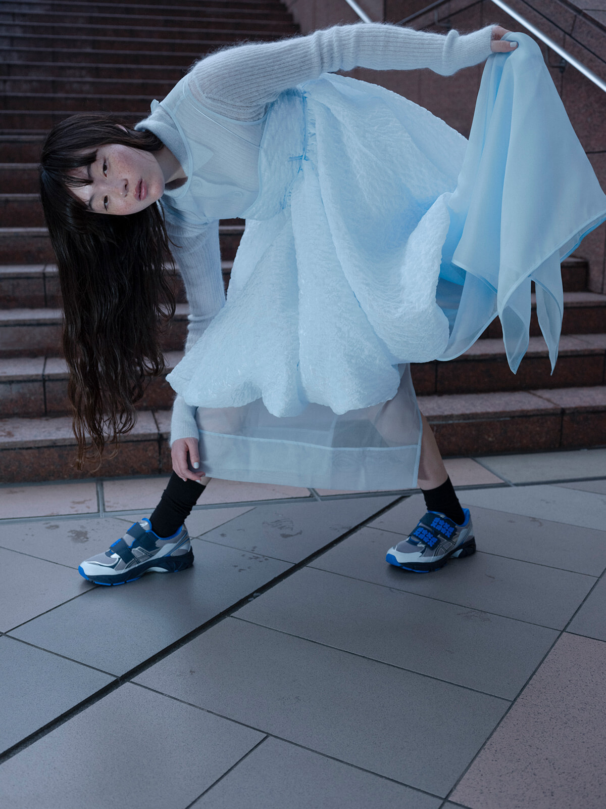 ビジュアルは、このコラボレーションの世界観を表現するため、セシリー・バンセンと一緒に仕事をすることの多いフォトグラファーのホンマタカシを起用。フィルムノワールやSFのような世界観にインスピレーションを受け、東京を舞台に華やかに駆ける女性を描き、開放的かつ魅惑的に表現。シューズ「GT-2160」¥27,500(11/22発売)/アシックス(アシックスジャパン)