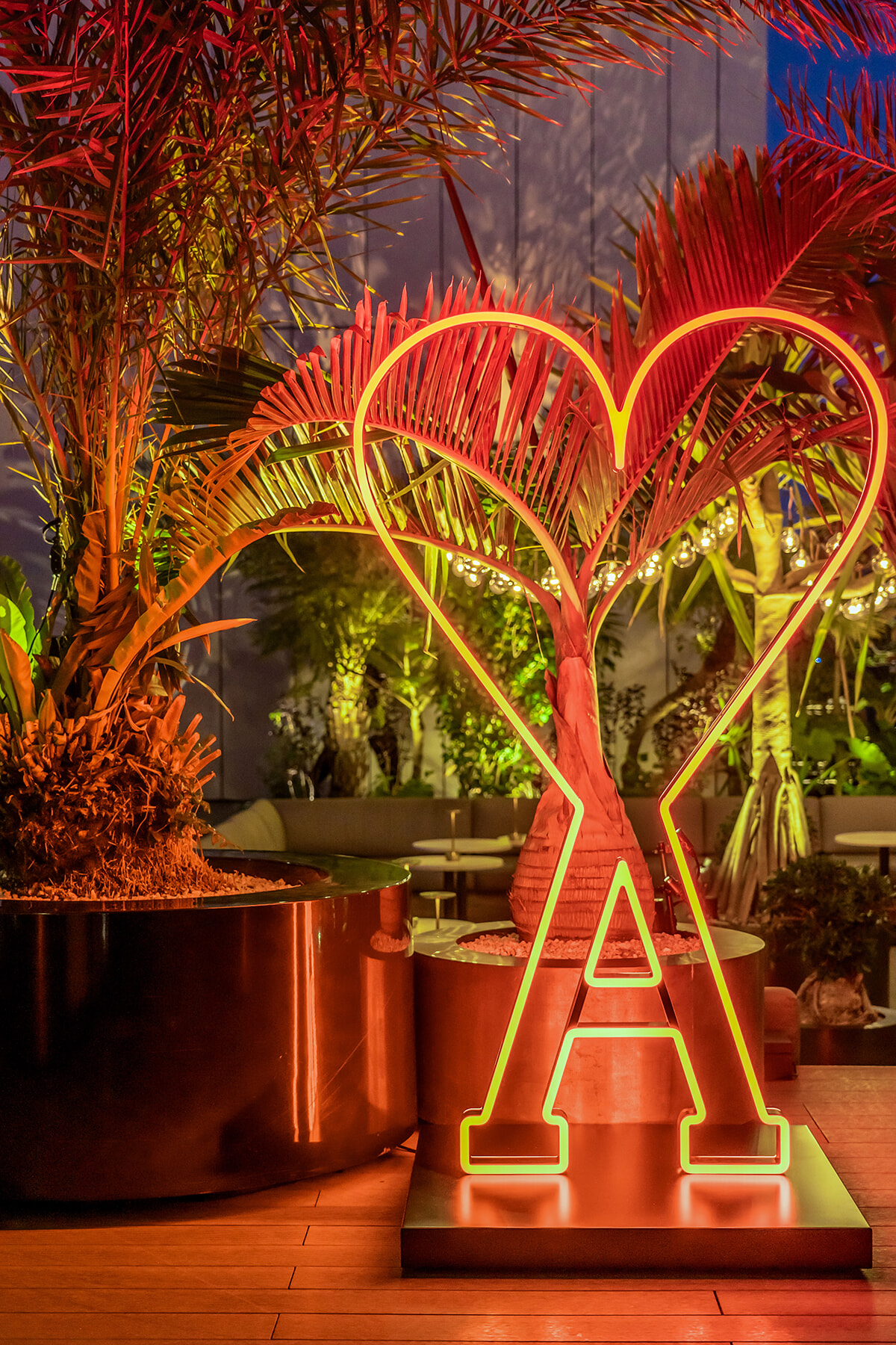 会場にはメゾンのロゴであるハートとAのネオンサインが。