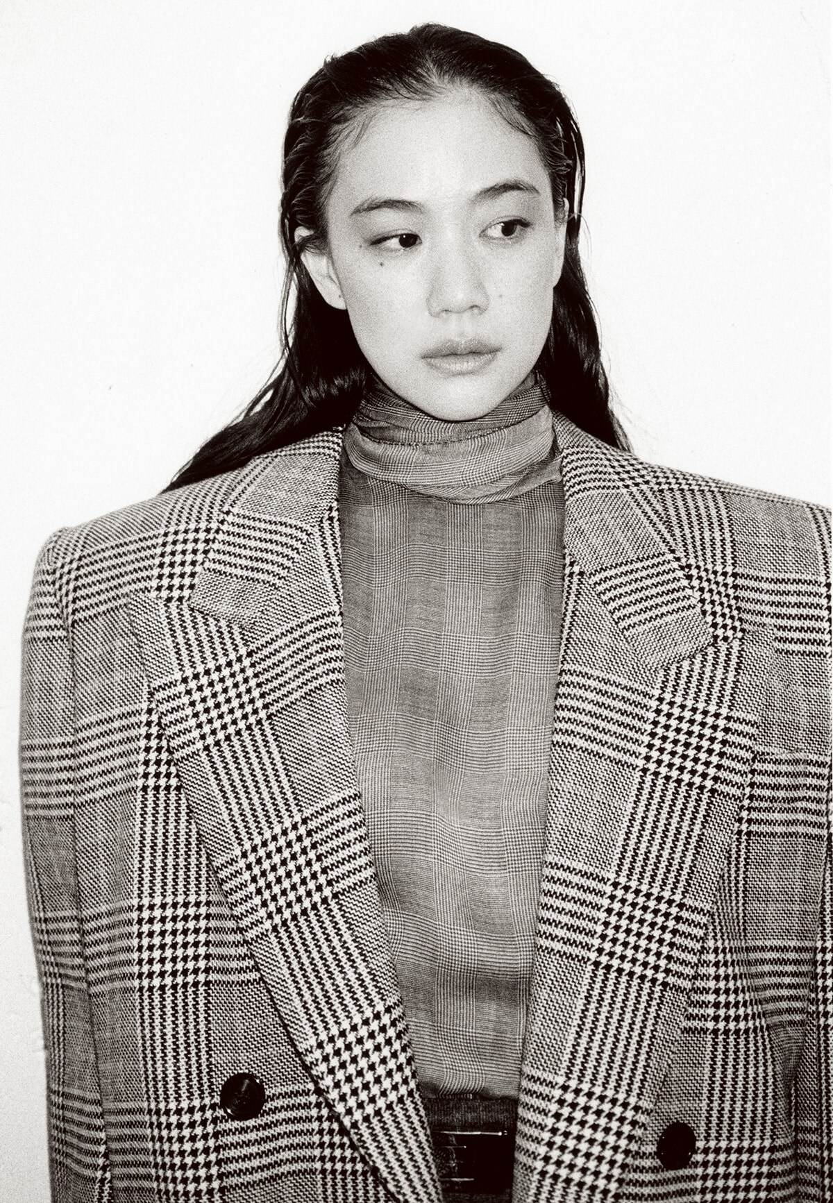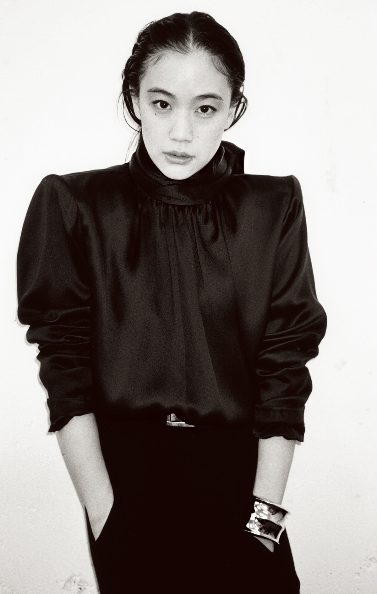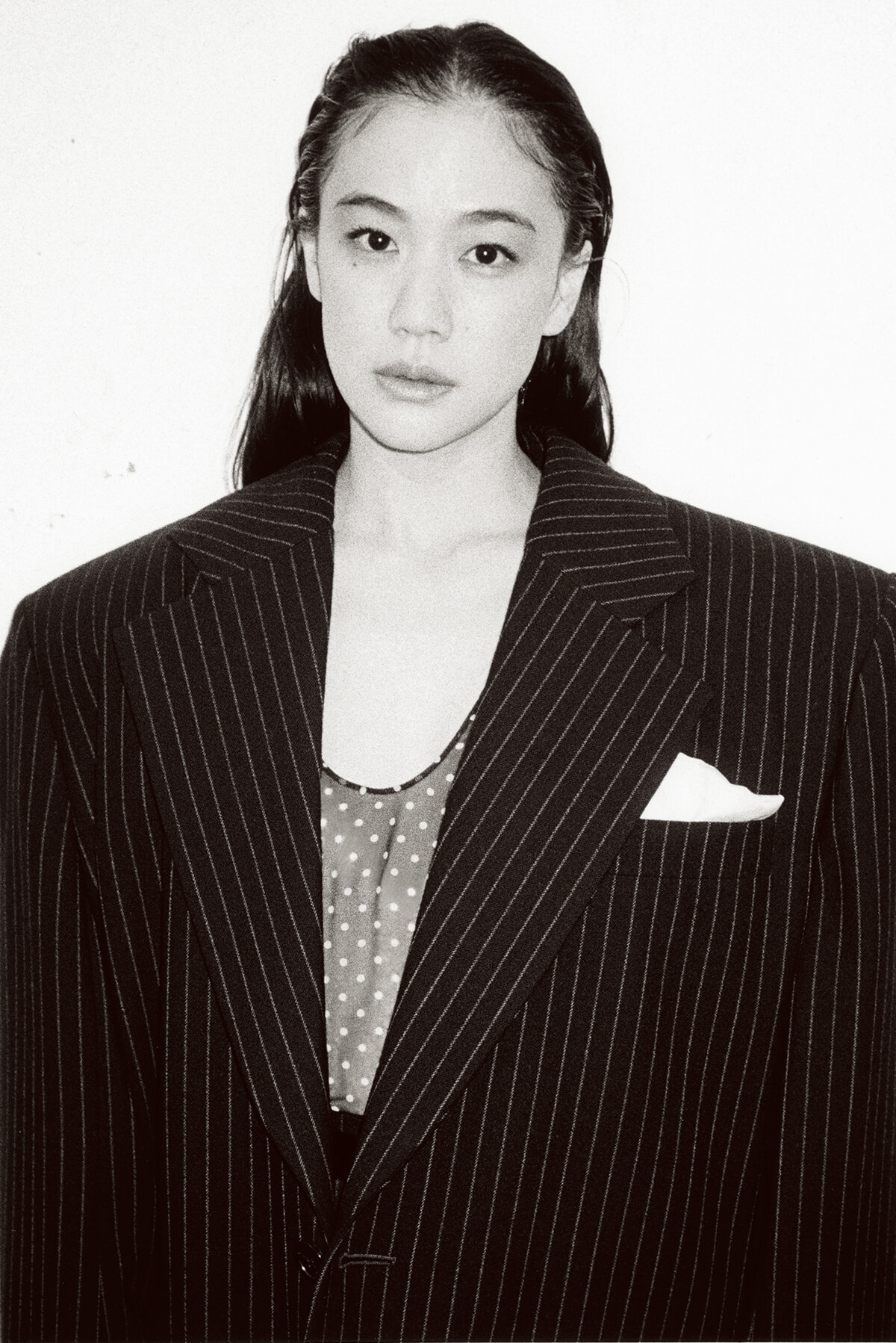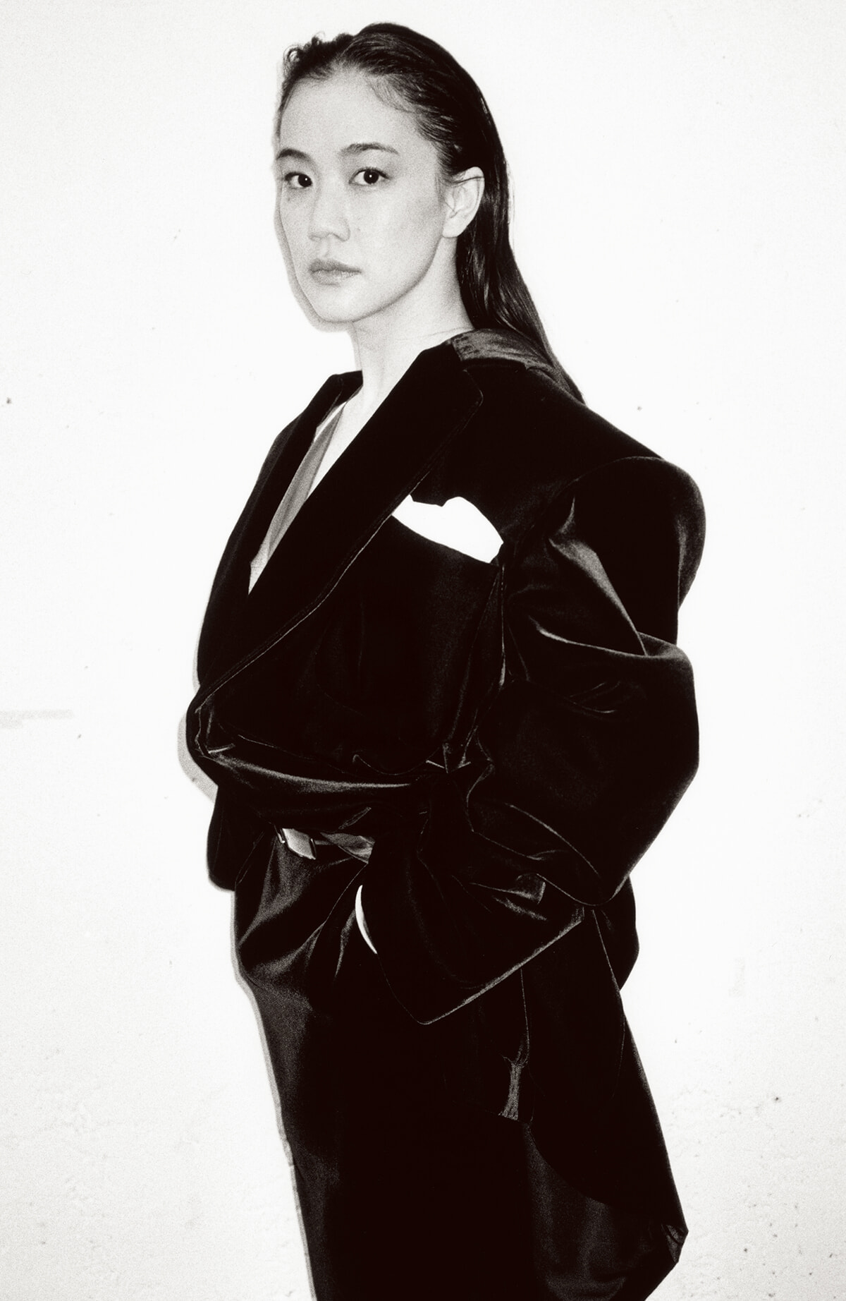 ダイナミックな構築性、力強いショルダーライン、サンローランが提示する新時代のエレガンス。蒼井優が、そのアティチュードを纏う。