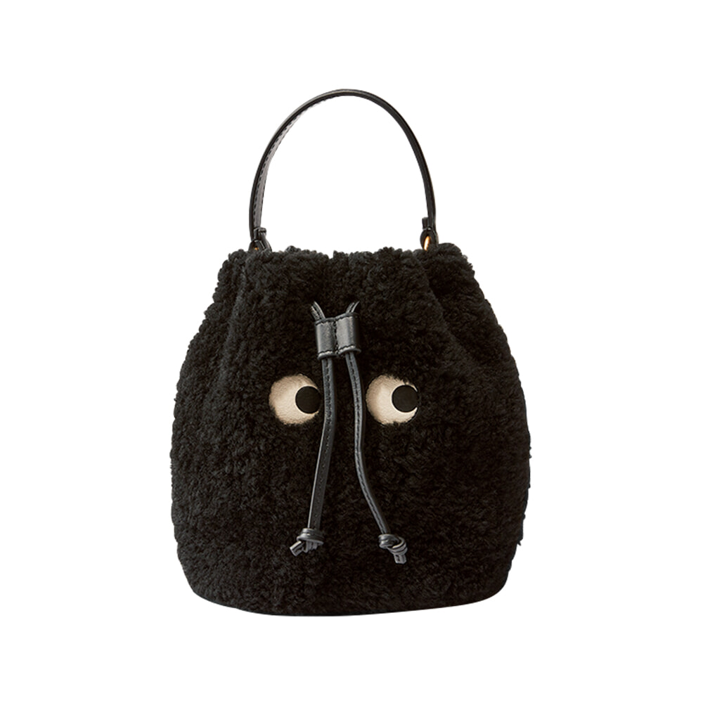 バッグ「ドローストリング クロスボディ アイズ」(ストラップ付き、H19×W16×D10cm)¥94,600/ アニヤ・ハインドマーチ(アニヤ・ハインドマーチ ジャパン)