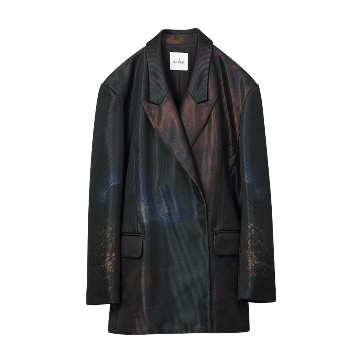 ベーシックなテーラードも唯一無二の異素材で表情変化。